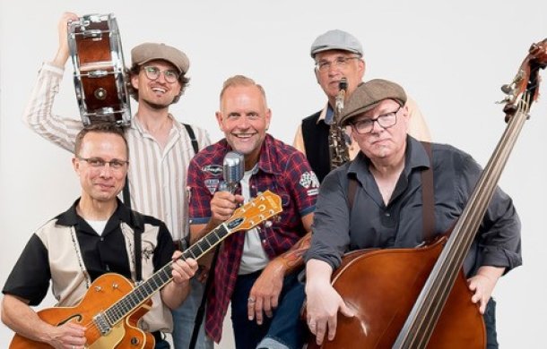 Hessische Rockabilly-Band zelebriert den unverfälschten Sound der 50er-Jahre.Optisch und akustisch dreht die fidele Truppe mit Augenzwinkern das Rad der Zeit zurück.